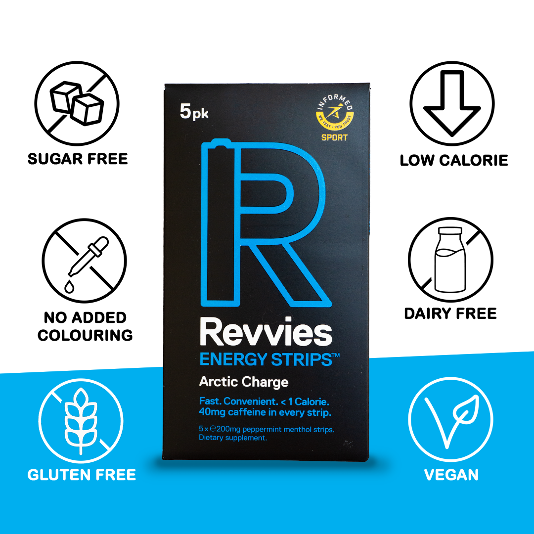 Caffeine is just one of five supplement ingredients recognised by World Athletics as being able to enhance performance. The caffeine in Revvies helps focus, heightens alertness, reduces perceived effort, and helps convert fat to energy, supporting you to perform at your best.