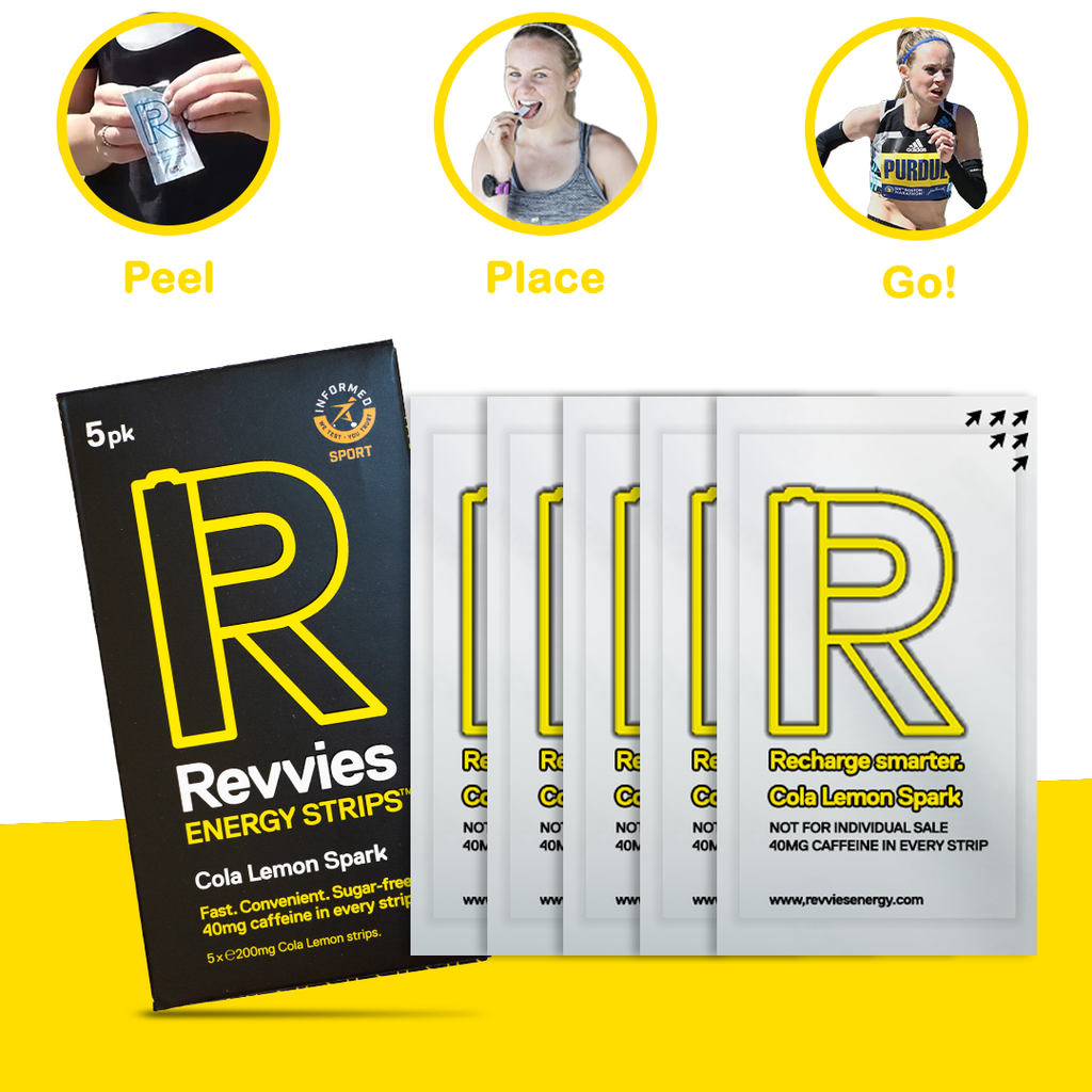 With regular consumption (1-2 strips prior to exercise, then one strip every 45 - 60 minutes of exercise), Revvies Energy Strips will help you to burst through your barriers and concentrate on meeting your fitness, training and racing goals.