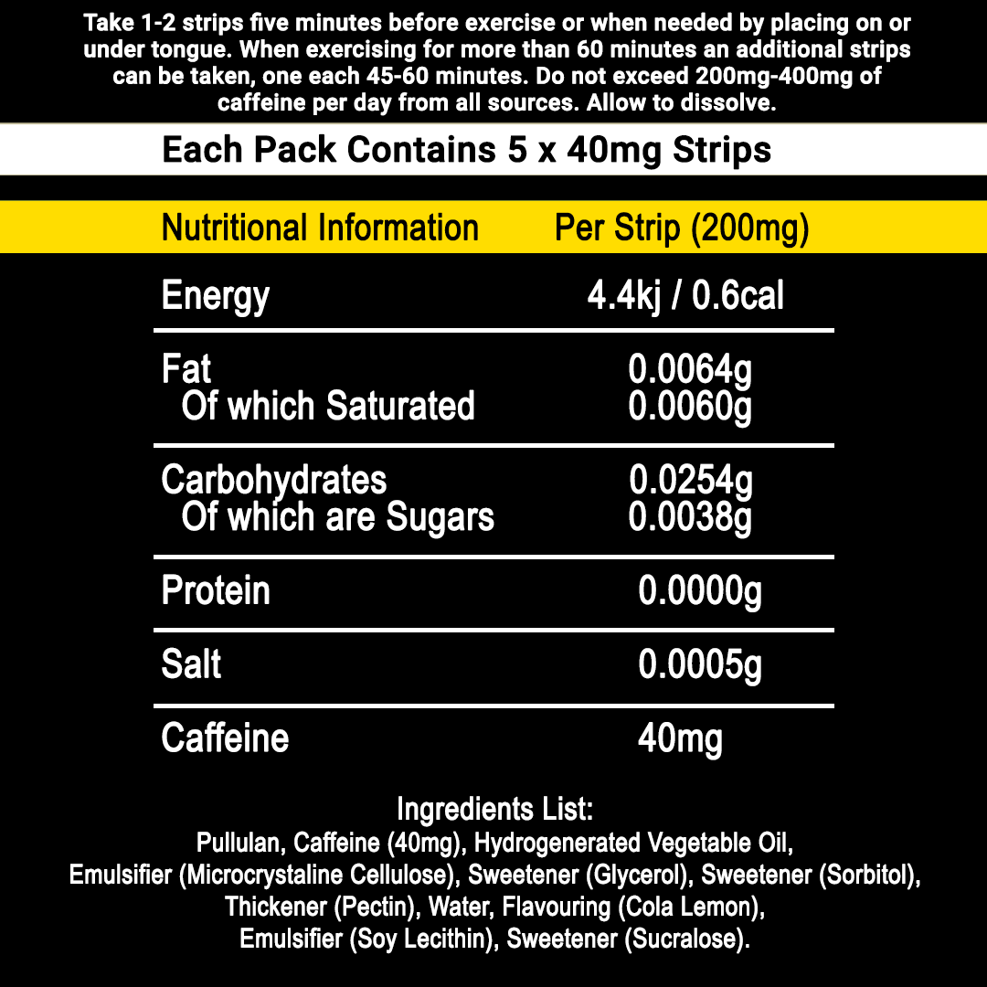 - Each strip contains 40mg of caffeine.