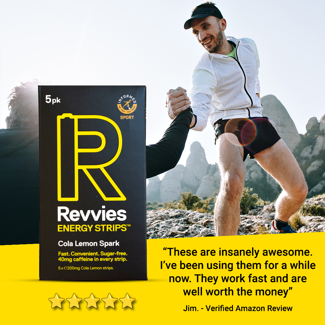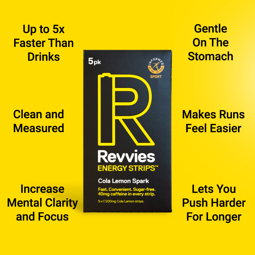 The caffeine in Revvies will help you maintain focus and allow you to train and race at peak performance for longer by masking feelings of fatigue.